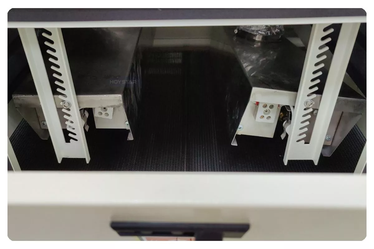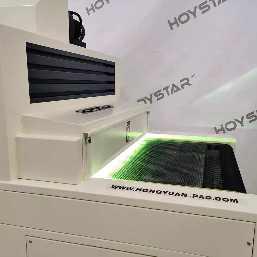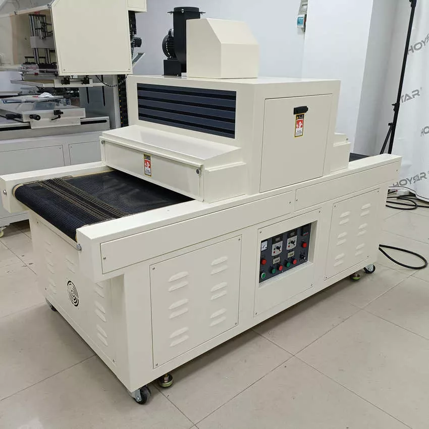 Como fabricante profissional na China, gostaríamos de fornecer a você uma máquina de cura UV com transportador de largura HOYSTAR de 1000 mm de alta eficiência, a máquina é adequada para secar tinta UV impressa em uma variedade de materiais, incluindo papel, PVC e outros substratos macios ou finos. A máquina pode ser facilmente conectada a impressoras de tela para obter uma cura perfeita da tinta UV. Com desempenho estável e ampla compatibilidade, atende efetivamente às necessidades de cura profissional dos clientes em diferentes aplicações de impressão.