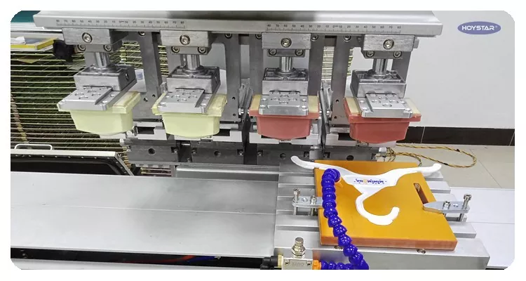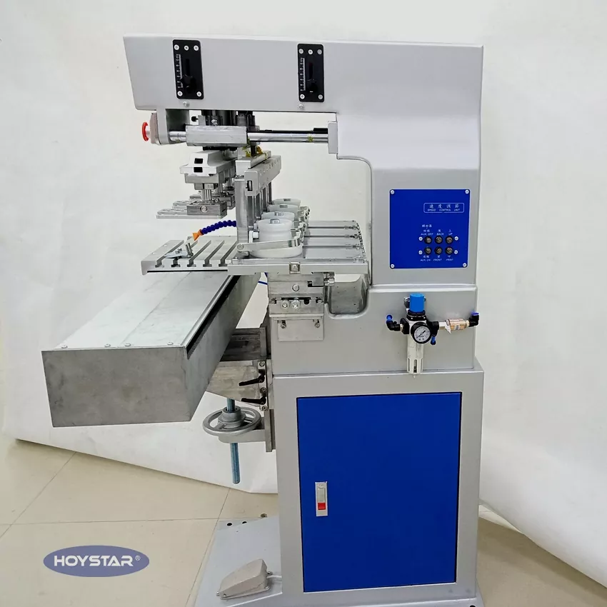 Esta impressora de almofada colorida HOYSTAR de 4 cores com mesa de trabalho para cobertura é um equipamento de impressão de alta capacidade e econômico. A máquina oferece ajuste conveniente, operação estável e bom efeito de impressão. A máquina oferece qualidade de impressão estável e é adequada para imprimir uma ampla variedade de itens, como produtos eletrônicos, invólucros de plástico, produtos de hardware, artigos de papelaria, pequenas artes e ofícios, bem como pequenos logotipos na superfície de presentes e muito mais. Pode atender a diversos requisitos de impressão do cliente.
