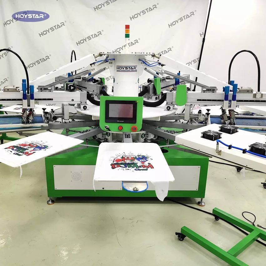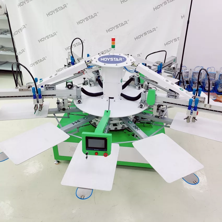 Esta máquina de serigrafia para impressão têxtil de camisetas HOYSTAR de 4 cores foi projetada especificamente para a indústria de impressão. Equipado com um microprocessador inteligente, tela sensível ao toque e sistema motorizado, garante alta estabilidade de impressão e tolerância de registro de cores dentro de ± 0,1 mm, melhorando significativamente a precisão e a consistência da impressão. Adequado para diversas aplicações de impressão, como camisetas, roupas, etiquetas e tecidos. Esta impressora de tela automática é a solução ideal para produção de impressão eficiente e de alta precisão.
