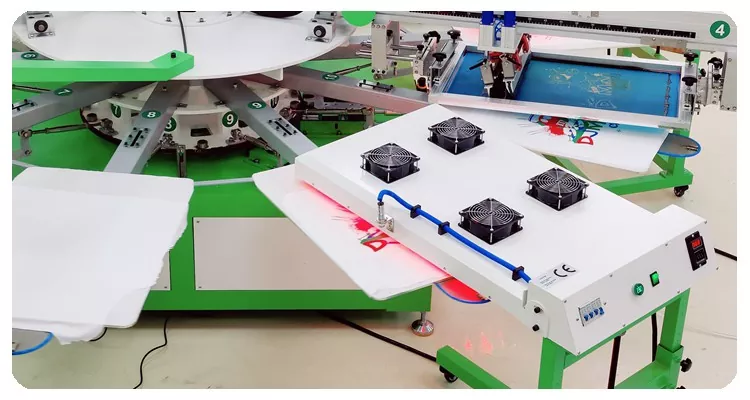 O secador móvel pode ser colocado dentro de qualquer estação de impressão conforme necessário