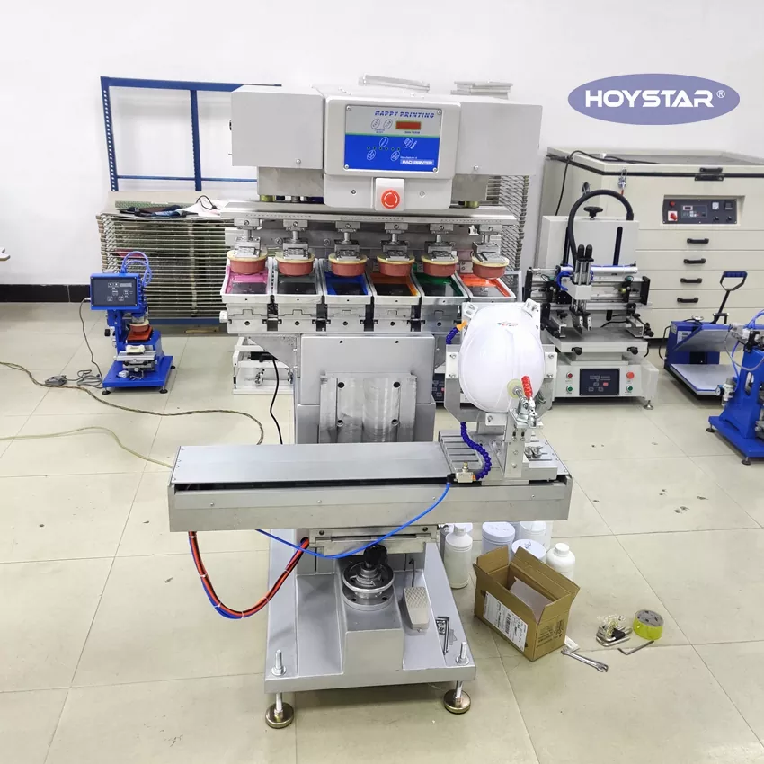 Como fabricante profissional na China, gostaríamos de fornecer a você uma impressora de almofada colorida HOYSTAR 6 de alta eficiência com mesa de trabalho shuttle. Nossas máquinas usam PLC e controle de tela de toque são adequadas para imprimir vários produtos. A máquina apresenta preço competitivo, juntamente com um tamanho pequeno e qualidade de impressão estável.