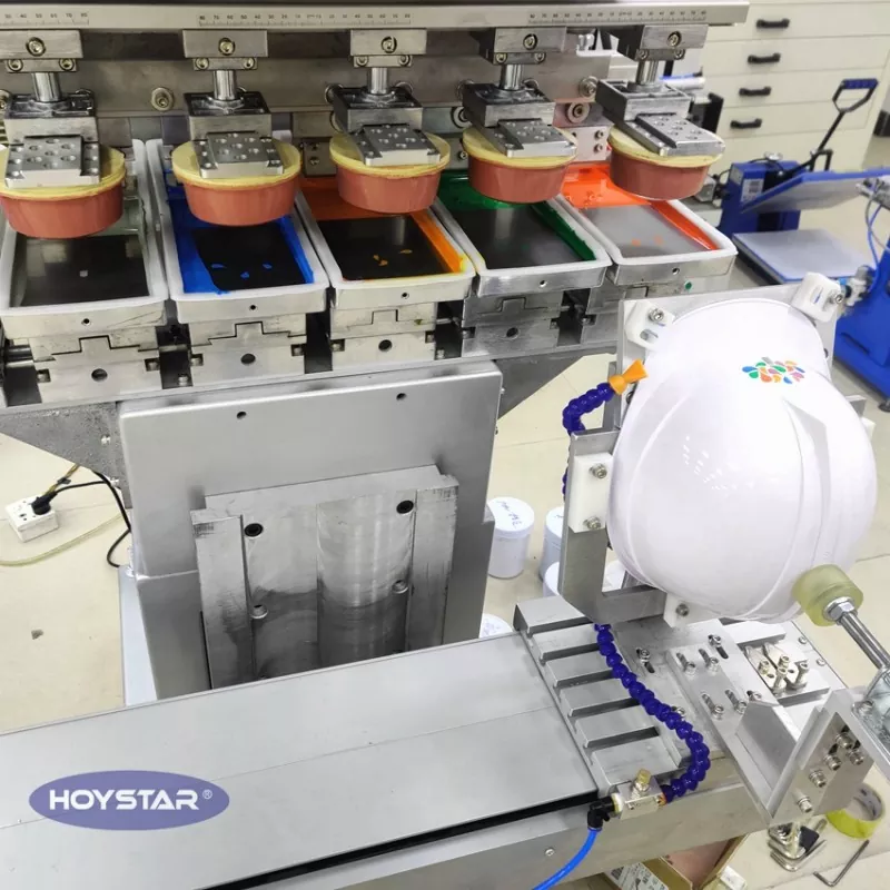 Como fabricante profissional na China, gostaríamos de fornecer a máquina de impressão de almofadas para capacetes de segurança HOYSTAR de 6 cores de alta eficiência, que é especialmente projetada para impressão em capacetes de segurança. Projetado para concluir a impressão em 6 cores em um único ciclo de produção, sem necessidade de configurações repetidas e reduzindo significativamente o tempo de produção. Além dos capacetes, seu design flexível também permite a impressão perfeita em uma variedade de produtos de formato semelhante, como capacetes de proteção, caixas de ferramentas de plástico e pequenos acessórios rígidos.