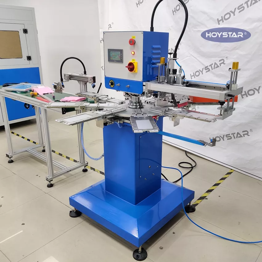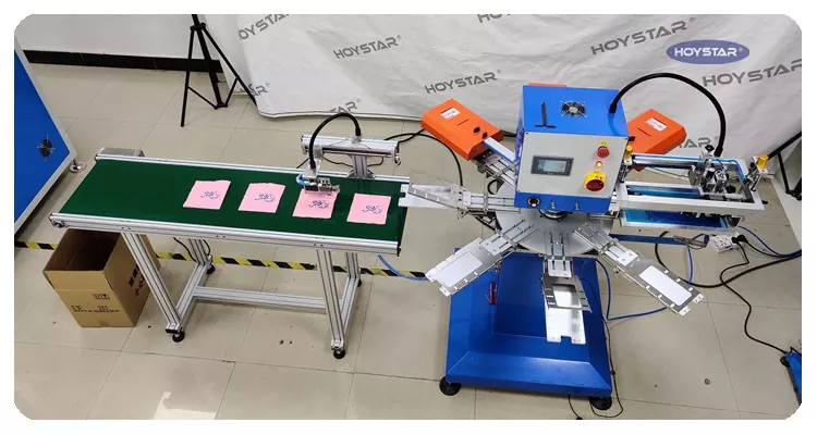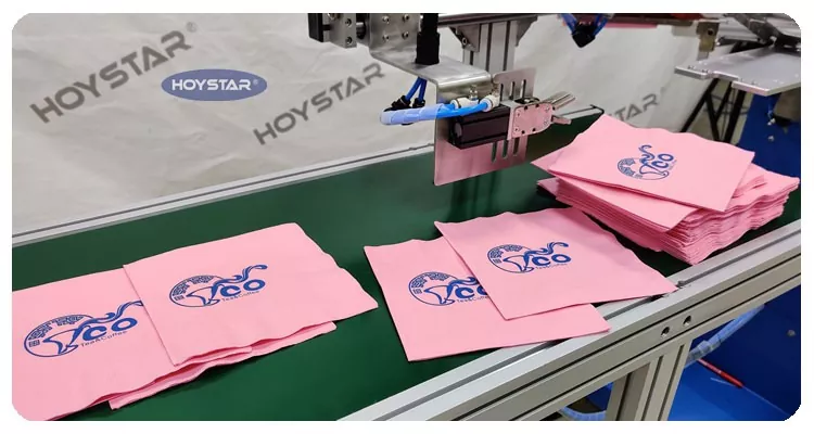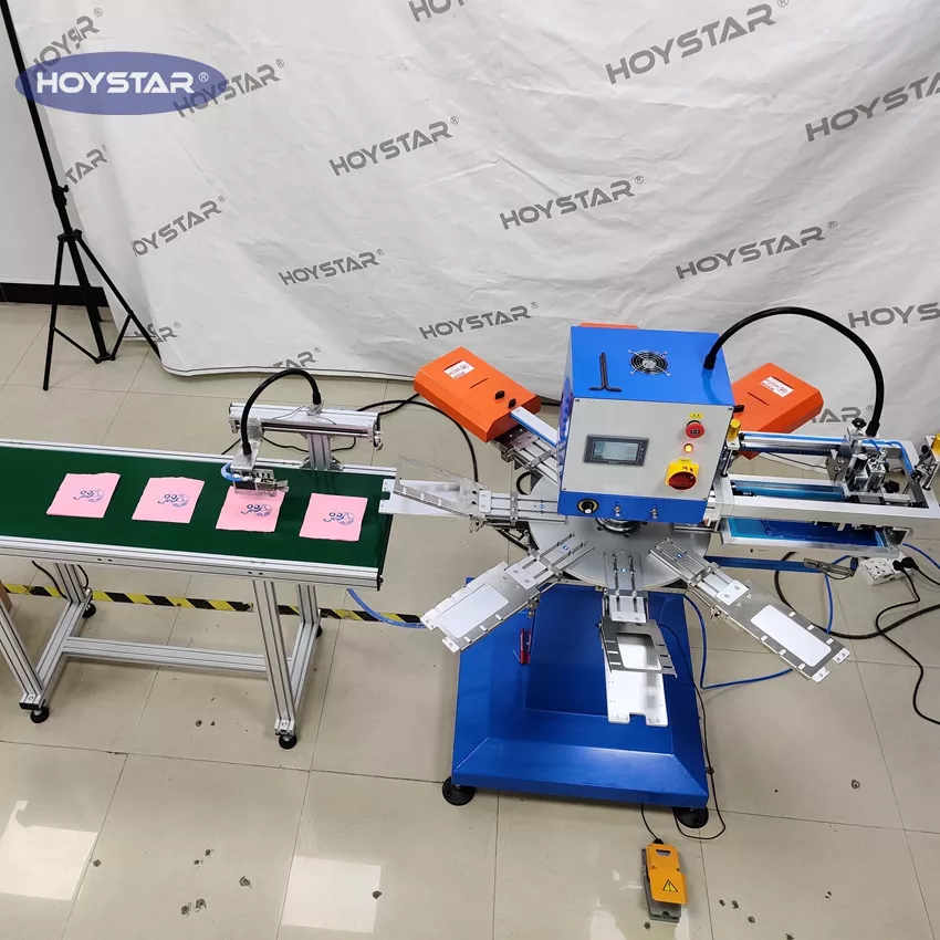 Como fabricante e fornecedor profissional, máquina automática de serigrafia para guardanapos de 1 cor HOYSTAR. foi projetado especificamente para impressão totalmente automática em guardanapos. Seu processo de impressão simplificado se desenvolve da seguinte forma: carregamento manual dos guardanapos na máquina – impressão automática da primeira cor – secagem automática – descarga automática – e coleta automática do produto.