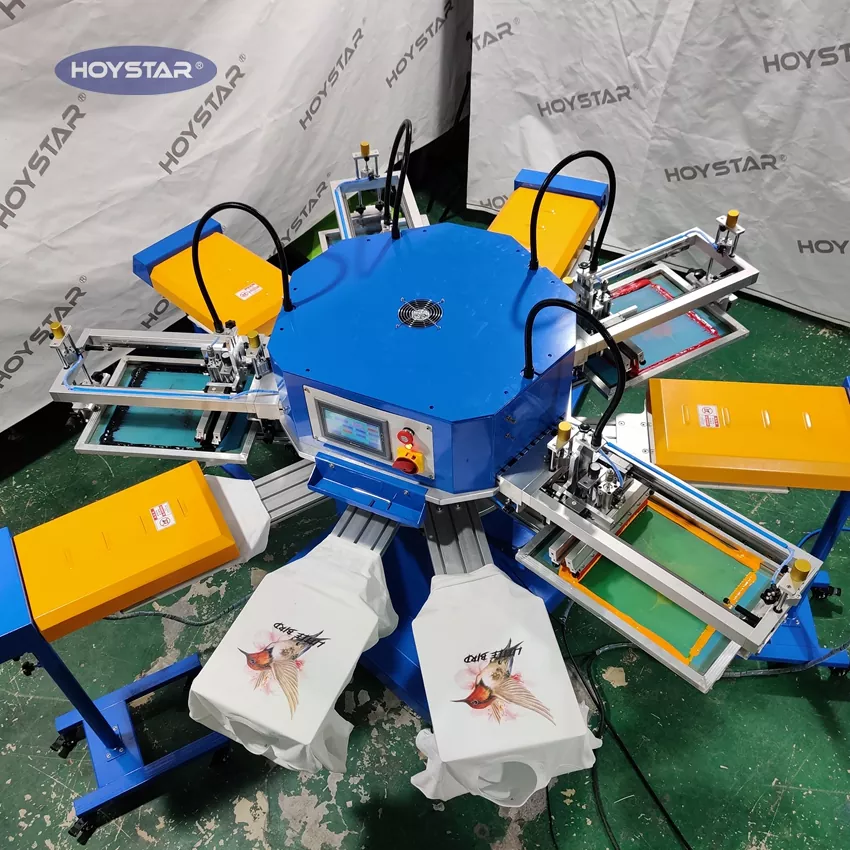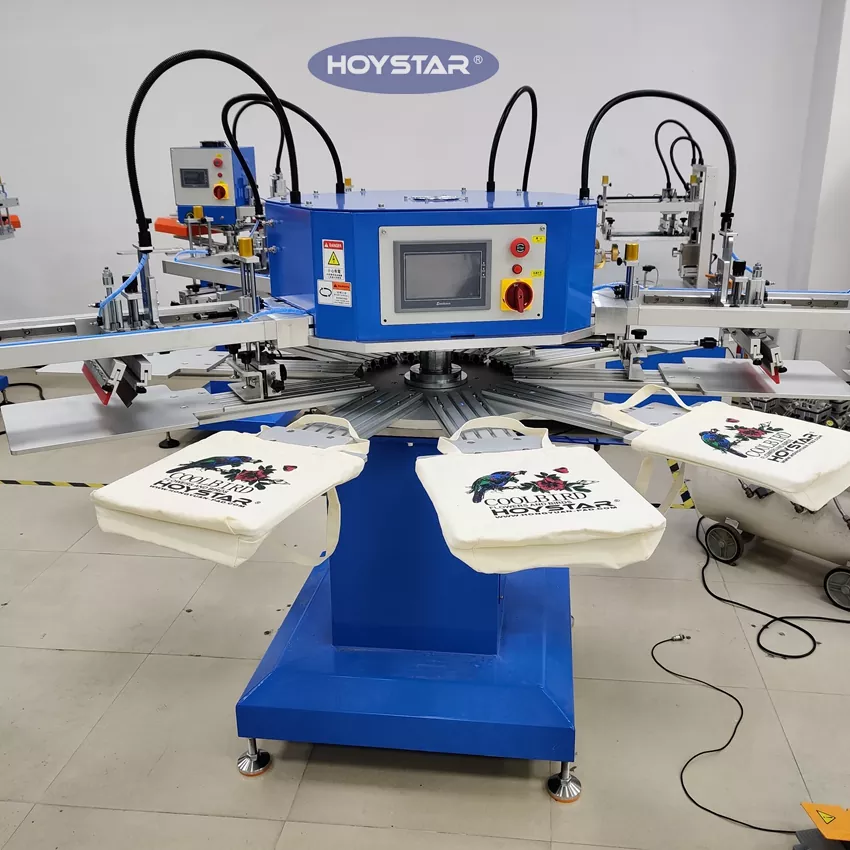 Como fabricante e fornecedor profissional, esta máquina de serigrafia automática para sacolas de camisetas HOYSTAR de 4 cores foi projetada especificamente para a indústria têxtil. Com uma produção impressionante de até 1200 peças por hora, você pode aumentar sua eficiência de produção. Design para impressão de etiquetas de roupas, etiquetas e bolsas, pode alterar o acessório para imprimir diferentes tipos de produtos. A máquina possui uma mesa de trabalho rotativa que permite carga e descarga rápida e conveniente, minimizando o tempo de inatividade e maximizando o rendimento.