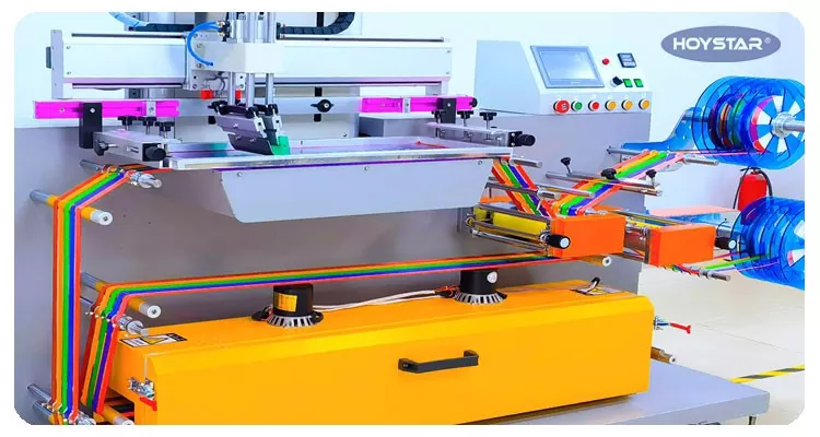 Esta HOYSTAR fornece máquina de impressão de tela de rolo de filme para rolo. Máquina equipada com registro fotoelétrico, controles PLC touchscreen, configurações personalizáveis, adequada para impressão em diversos filmes, fitas, etc.