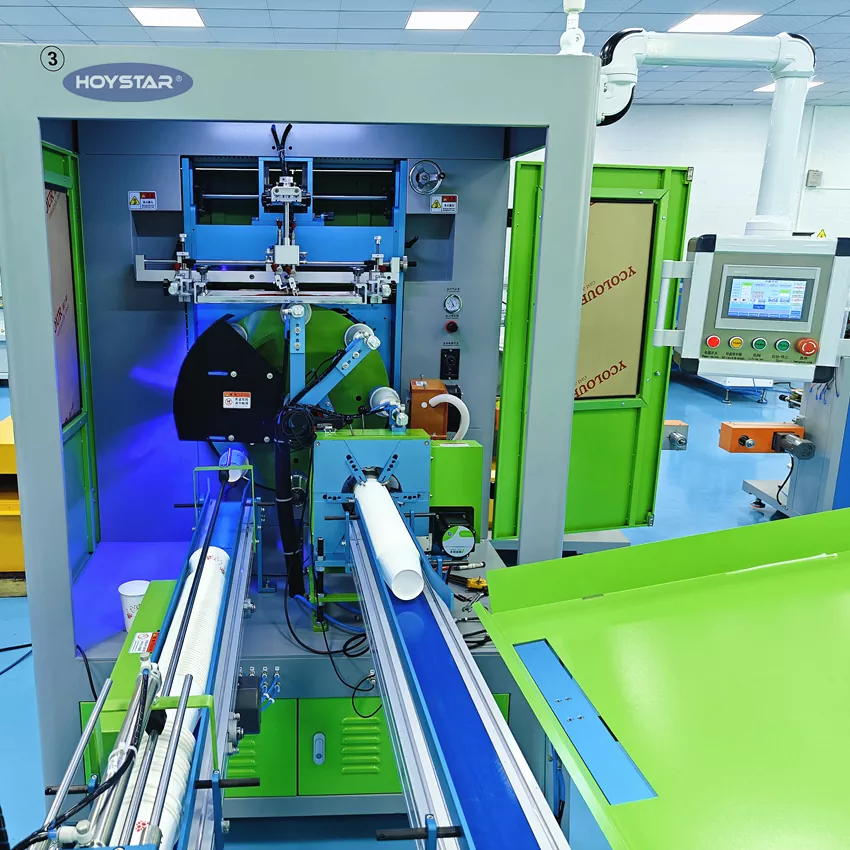 Como fabricante profissional na China, gostaríamos de fornecer a você uma máquina de serigrafia para copos de plástico multicolorida totalmente automática HOYSTAR de alta eficiência, solução de serigrafia de alta eficiência adaptada para cenários específicos - nossa máquina de serigrafia totalmente automática especializada para copos. Esta máquina foi projetada para impressão em copos e vem com fluxo de trabalho totalmente automático: carregamento automático, impressão automática, descarga automática e cura LED UV. Reduz bastante os custos de mão de obra e também minimiza erros durante a impressão, garantindo resultados de impressão estáveis na produção em massa.