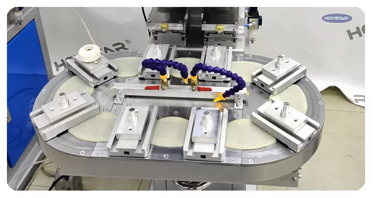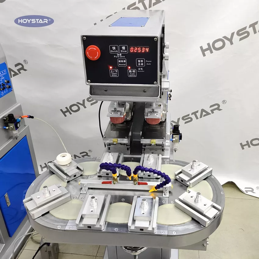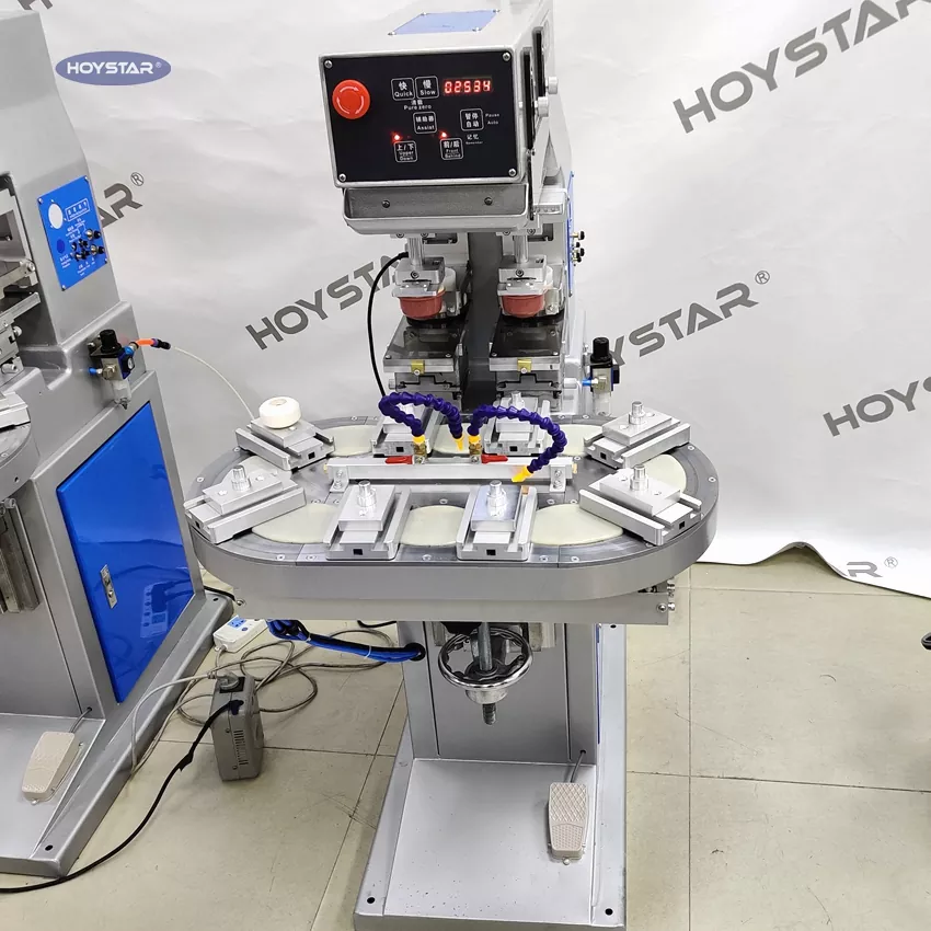 HOYSTAR é um fabricante e fornecedor confiável na China; A máquina de impressão de mesa rotativa de duas cores HOYSTAR é um equipamento de impressão de alta capacidade e econômico. A máquina oferece ajuste conveniente, operação estável e bom efeito de impressão. A máquina oferece qualidade de impressão estável e é adequada para imprimir uma ampla variedade de itens, como produtos eletrônicos, invólucros de plástico, produtos de hardware, artigos de papelaria, pequenas artes e ofícios, bem como pequenos logotipos na superfície de presentes e muito mais. Pode atender a diversos requisitos de impressão em duas cores dos clientes.
