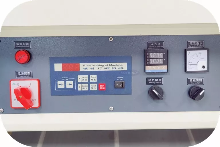 A máquina de exposição a vácuo UV com secagem para serigrafia equipada com painel de operação, o tempo de exposição e o tempo de secagem da máquina podem ser ajustados livremente de acordo com as necessidades